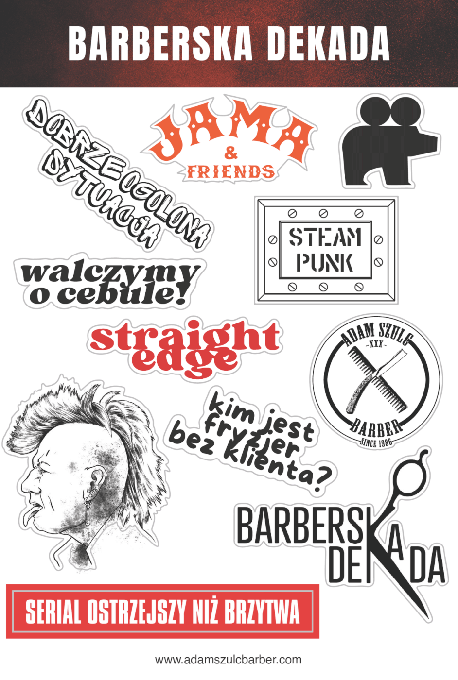 Zanurz się w świat Barberskiej Dekady - serialu ostrzejszego niż brzytwa. Ten arkusz winylowych naklejek to hołd dla barberskiej kultury, muzyki, przyjaźni i pasji, które od lat tworzą klimat marki Adam Szulc Barber.